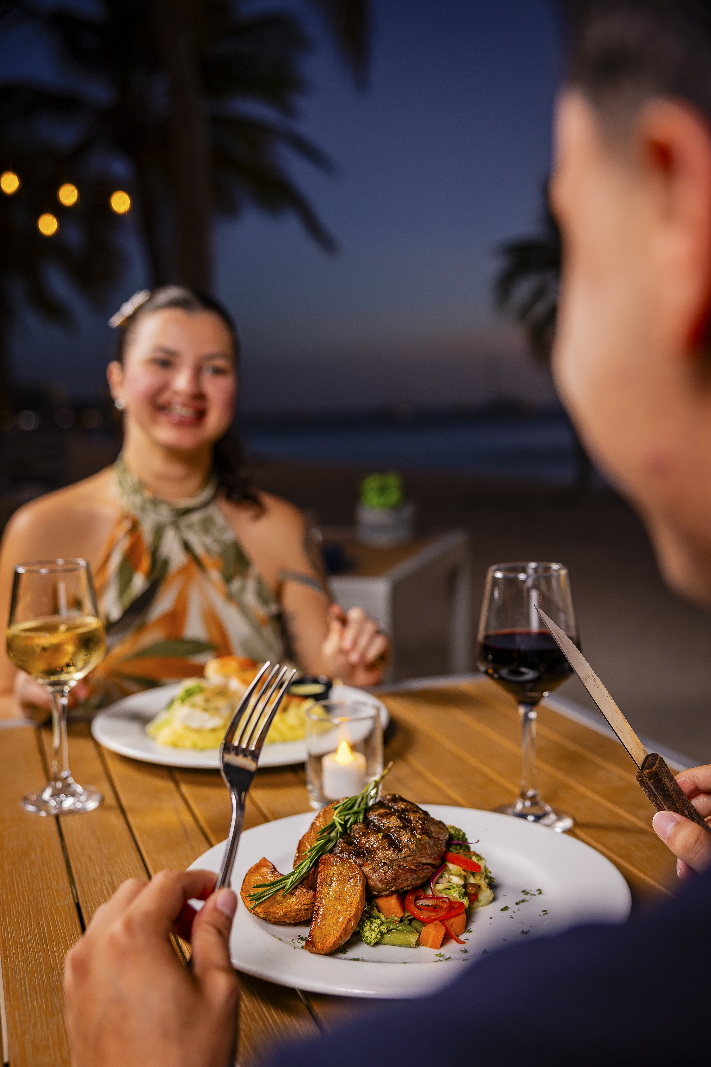 From oceanfront seating and an approachable dinner menu to a lively after-dark scene, MooMba Beach offers a dining experience that blends shoreline comfort with the spirit of a true island night out. Guests arrive for dinner, and often stay long after, carried by the music, the setting, and the inviting rhythm of the beach.